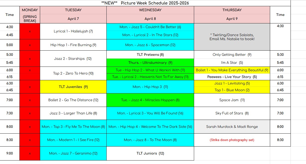 See picture week schedule > CLICK HERE​